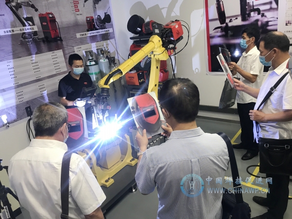调研时,除了参观样品间和现场施焊表演与交流的常规内容之外,重点就机器人焊接工艺研究和双方合作等相关事项进行了探讨,并达成初步共识。