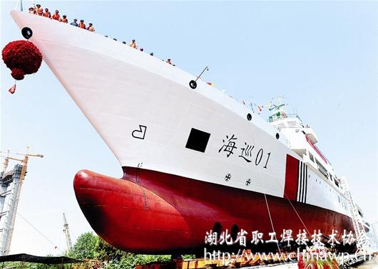 图为:“海巡01”轮在武汉下水