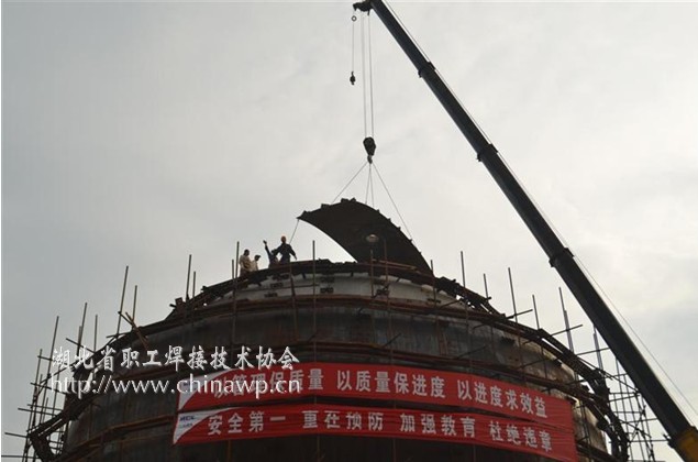 7月16日上午,由钢构公司承建的国内最大、第一台2500立方米液化天然气(LNG)不锈钢双罐低温球罐在湖北利川完成了最后一块极带板的吊装,即将进入到最为关键的全面焊接中。该球罐的顺利封顶,标志着中国一冶在不久的时间内又有一项新的记录和业绩产生。